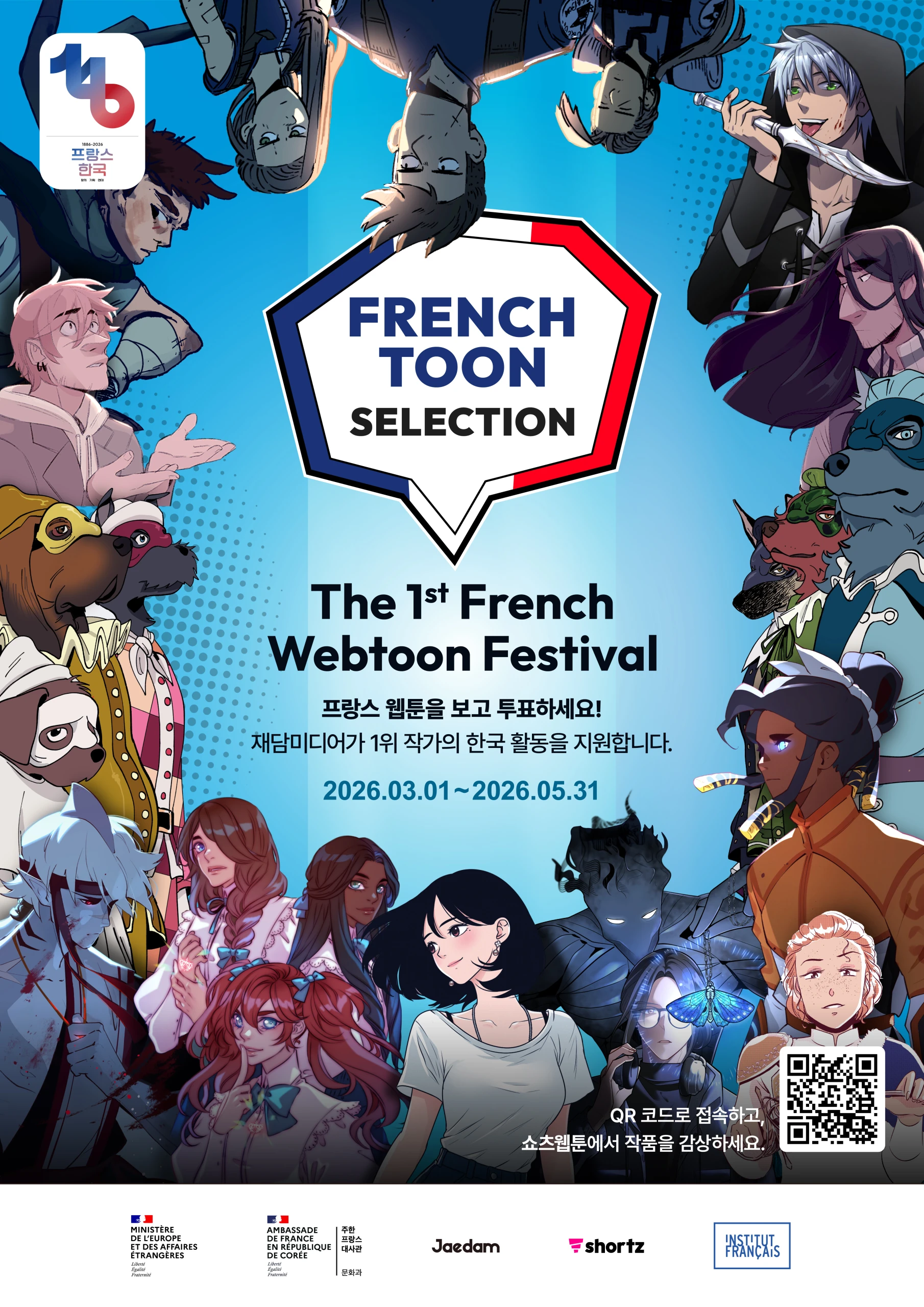 ‘프렌치툰 셀렉션’은 프랑스 현지 작가들의 웹툰을 한국 독자들에게 소개하고, 우수 작품을 선별해 한국 시장 진출을 지원하는 한불 협력 프로그램이다. 프랑스 웹툰 작가들이 출품한 작품 중 프랑스 웹툰 창작의 풍부함과 다양성을 대표하는 10편이 최종 선정되었으며, 이들 작품은 한국어로 번역되어 재담미디어의 숏폼 웹툰 플랫폼 ‘재담쇼츠’를 통해 2026년 3월 1일부터 5월 31일까지 무료 공개된다.