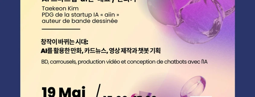 주한프랑스대사관 문화과는 판다미디어, 아스포레드와 함께, 오는 5월19(화)일 오후3시-5시, 주한프랑스대사관 김중업관에서, 생성형 AI 기술이 창작 생태계에 가져온 변화를 고찰하고, 실무적인 활용 방안을 모색하기 위해 특별 강연을 개최합니다.